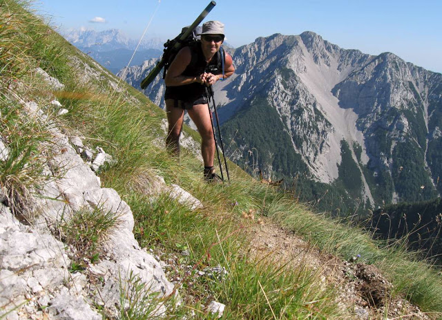Kot je bilo že enkrat omenjeno sem v gorah popolni analfabet. Če na hrib ne morem z biciklom, potem ni vreden obiska. Vzrok tiči v tem, da je sestop zaradi škripajočih, bolečih in zvečer otečenih kolen nekajkrat težji od vzpona. Malo težko za verjet, ampak raje nosim prevozno sredstvo eno uro na rami in se potem v dolino peljem kot gospod, kot pa, da se med spustom vrtim okoli pohodnih palic, kot en mali pijanec, ki mu pod nogami zmanjkuje trdne podlage . Marsikdo pozna tisti neprijetne občutek, ko ne veš ali bo koleno zdržalo ali pa te bo pekoča bolečina sesula na tla.