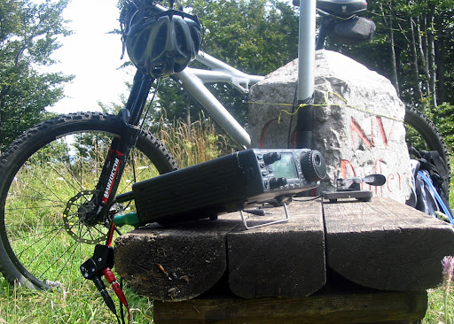 tokrat sem si privoščil tak luksuz kot le redko kdaj. Na vrhu je kot že rečeno tudi manjša koča in ob njej dobiš vse živo. Od klopi, do zidakov, polen, kant od barve in nema da nema. Par stvari sem si sposodil in QSO time se je lahko začel.