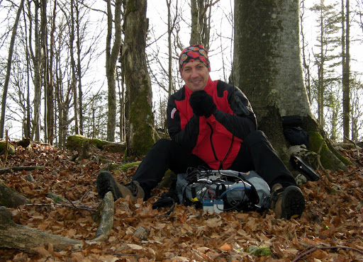 Zaradi zgoraj povedanega sem si na vrhu izbral eno debelo bukev, ki mi je vsaj na začetku nudila kar dobro zavetje. Vsaj do takrat, ko se je veter pripodil z druge strani.