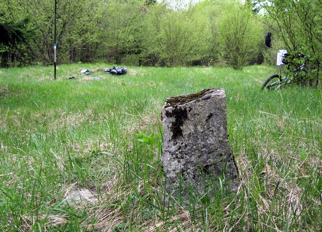 Izberem zahodno varianto, ki naj bi bila markirana. In tudi je, še preveč, kajti zaradi prijetnega šibanja po stezi ne opazim markacije za prvi odcep proti dolini. Za kazen je bilo treba poganjat nazaj v hrib. Na desni se vidi lovska opazovalnica, na GPSu se vidi vrisana pot, v naravi pa poti ni. Oznak zanjo tudi ne. Le eno krmišče stoji sredi travnika. Ko se po dvajsetih minutah iskanja že odločim, da jo mahnem kar naravnost skozi gozd me preseneti ogrooomna Knafeljčeva oznaka. Sumim, da so jo nalašč postavili malo dlje, da jo nepoznavalci težje najdejo in izberejo drugo, tudi označeno a manj zanimivo pot v dolino.