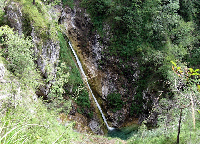 Malo pred prihodom na dno, v Krtovše, se še srečam z dvema skupinama adrenalinežev, ki se odpravljajo na “patokanje“, kot rečejo domačini kanjoningu. Kljub vročini so oblečeni v neoprenske obleke in prav vidiš jih kako trpijo med nabiranjem višine in hojo proti začetku spusta.