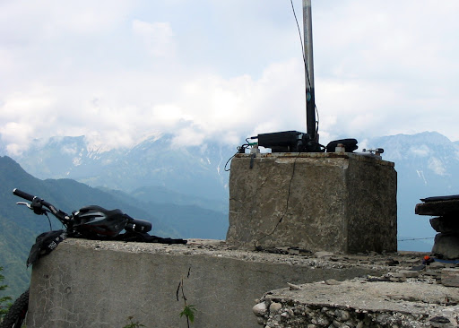 Ves zadovoljen z globoko senco, ki jo nudi baraka in z opuščenim betonskim nosilcem antene, ki sem ga spet dal v delovanje, postavim anteno, se udobno namestim, prižgem postajo in …. groza. Zaradi bližine raznih oddajnikov, ki krasijo rtv stolp imam šum na 7.032MHz skoraj na devetki. Parkrat pokličem in takoj sledi premik malo nižje, kjer se je dalo sprejemat tudi bolj švoh signale. Ista štorija se je ponovila še na 10.118MHz. Spet je bil potreben zamik za par kHz. Prvi trenutek sem mislil, da imam cel band s tako visokim šumom pa se je izkazalo, da le ni tako kritično. Bodočim aktivatorjem vrha svetujem, da se raje namestijo znotraj ograde pri kravah. Kljub naravnim aromam bo klofanje manj stresno.