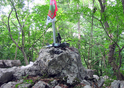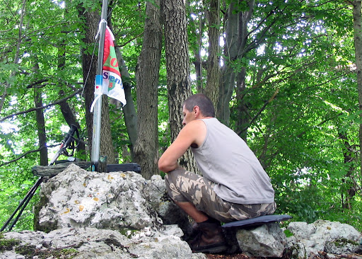 Ob prihodu na vrh sem se prvič do sedaj vprašal ali bo sploh mogoče postavit anteno!? Spet je bilo potrebno narediti koridor za dipol. Veje so ga nežno božale, skale so me med postavljanjem premetavale in pravi čudež je, da je signal uspel priti izpod vsega vejevja na plano. A le na 40m! Na 30m nisem uspel logirati niti ene zveze. Me niso slišali!